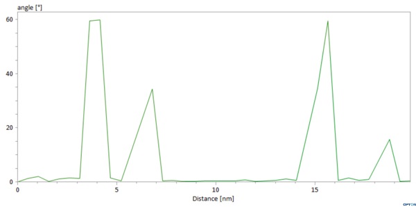 納米孿晶銅的孿晶結(jié)構PQ圖與IPFX疊加顯示以及圖中線段處角度分布圖