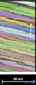 例2 采用共軸TKD技術測試了納米孿晶銅的納米片層結(jié)構,并且分辨出了2nm尺度的孿晶片層結(jié)構