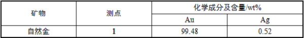 根據《巖金礦地質勘察規范》,金的質量分數大于80%為自然金。該尾礦金礦物能譜分析結果見表4,由表4可知該尾礦中金礦物基本不含雜質,為自然金,金成色高,達994.8‰。