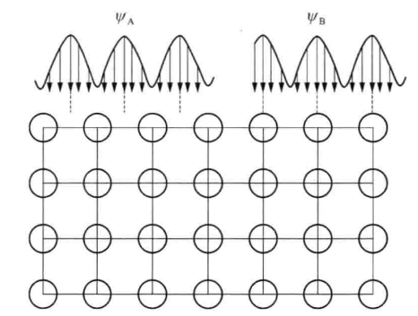 再進(jìn)一步探索為什么電子束在掃描角度大于θb時(shí)形成的背散射電子數(shù)量較少,而在角度小于θb時(shí)形成的背散射電子數(shù)量較多呢?這可以用雙光束近似模型來(lái)解釋,見(jiàn)圖2。在晶體中運(yùn)動(dòng)的電子行為可以用兩個(gè)Bloch波來(lái)描述。這兩個(gè)平面波均受晶格的周期性調(diào)制,其中一個(gè)波為通道波ΨA,其ZUI大振幅在晶體中兩個(gè)原子對(duì)應(yīng)的平面中間的位置,發(fā)生電子背散射現(xiàn)象的幾率較小;另一個(gè)波為散射波ΨB,其ZUI大振幅在原子對(duì)應(yīng)平面上,發(fā)生電子背散射的幾率較大。