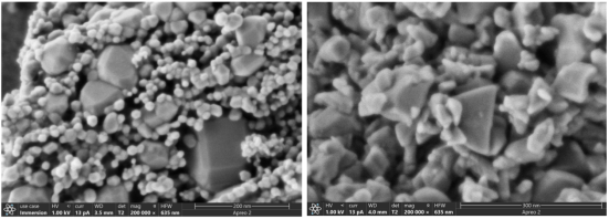 圖9 水滑石基復合氧化物陶瓷納米粉體催化劑(左圖)及納米金剛石顆粒(右圖)