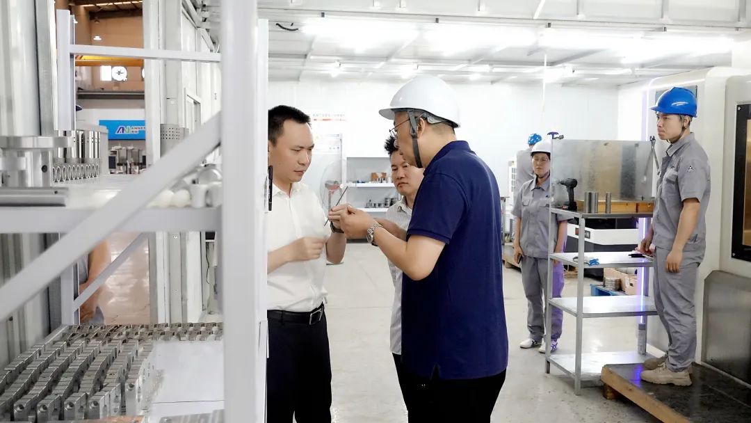 考察期間,吳開華市長一行參觀了公司的研發中心、生產車間和加工中心。在這里,自動化生產線正在高效運轉,每一條產線都配備了智能控制系統,高度智能化的設備和精準的操作流程,使整個生產工作顯得井然有序、精準無誤。