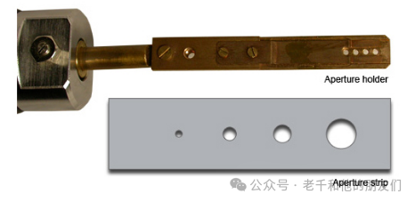 光闌是金屬條上的一個(gè)小孔,它被放置在電子束的路徑上,以限制電子沿鏡筒向下運(yùn)動(dòng)。光闌可阻止偏離軸線或能量不足的電子沿柱子向下運(yùn)動(dòng)。根據(jù)所選光闌的大小,它還可以縮小光闌下方的電子束。