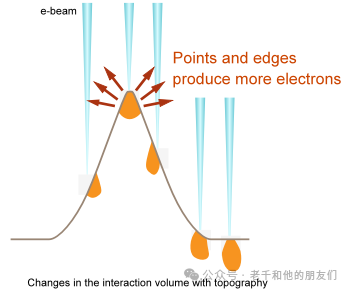 圖8 不同加速電壓下,電子束與樣品的相互作用體積不一樣,高加速電壓穿透的更深