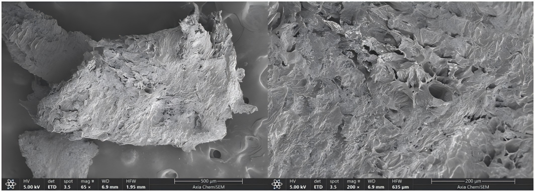 為了更好地觀測(cè)各種食品在微觀下的形態(tài)結(jié)構(gòu),本文采用賽默飛Axia ChemiSEM全新智能型鎢燈絲掃描電鏡進(jìn)行拍攝。Axia ChemiSEM具備操作方便,適用人群廣泛的特點(diǎn)。采用全中文操作界面,日常操作無(wú)需光闌合軸,內(nèi)置的用戶使用指南方便任何人員進(jìn)行操作,大大降低了設(shè)備的操控難度。不僅如此,Axia的高穩(wěn)定樣品倉(cāng)設(shè)計(jì),還可以容納大而重的樣品。同時(shí)標(biāo)配5種探測(cè)器,完善的探測(cè)系統(tǒng)和直觀的導(dǎo)航系統(tǒng),可幫助用戶快捷、全面的掌握樣品信息。