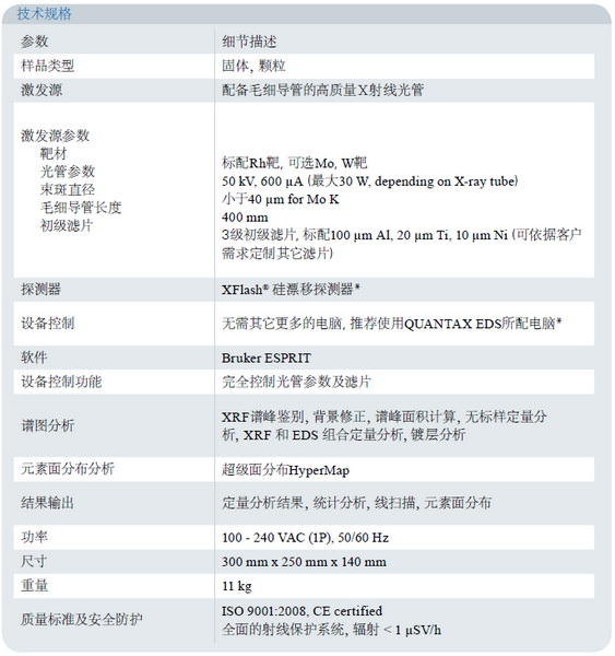 利用ESPRIT軟件可同時(shí)使用微區(qū) XRF和EDS的定量結(jié)果,從而使兩種分析方法的優(yōu)勢(shì)均得以體現(xiàn)。對(duì)于輕元素, EDS定量分析結(jié)果很可靠;同時(shí),微區(qū) XRF在分析中等元素或重元素時(shí)其檢測(cè)限低至 10 ppm。這就意味著利用 ESPRIT軟件將 EDS和微區(qū) XRF的定量結(jié)果結(jié)合以后,可得到迄今為止所有其它能量色散譜儀從未得到過(guò)的精確結(jié)果。
