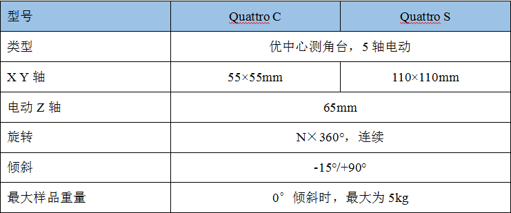 靈活、精確的優中心樣品臺,105°傾斜角度范圍,可全 方位觀察樣品;